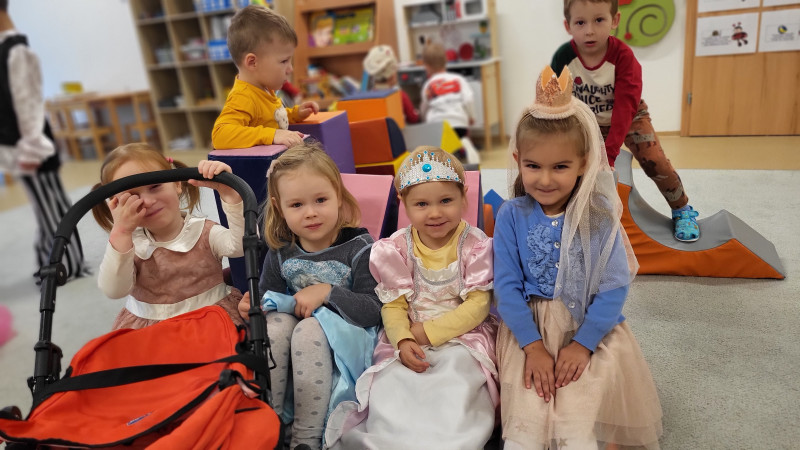 Deti žili kráľovstvom v domových kostýmoch pri voľnej hre.