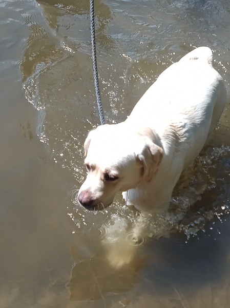 Pes miluje vodu a stále aj pri nepriaznivom počasí využije čas na kúpanie :)