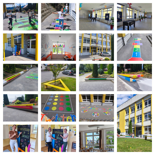 Tento školský rok sme začali už od prvého kroku veselo a farebné. Do exteriéru školy sme nainštalovali jedinečné a farebné lavičky, na ktorých si môžu oddýchnuť, rovnako lákajú aj skákanky, ktoré sme namaľovali spoločne s kolegynkami???? Ozdobili sme okná v téme detí, ktoré sa tešia zo všetkých aktivít a samozrejme z toho, že sa stretnú v škole. Sme športovo zameraná škola a preto sme nainštalovali postavy športovcov na chodbách. Verím, že sa vám naša jedinečná výzdoba bude páčiť ???????????? Ďakujeme za každý váš hlas.
