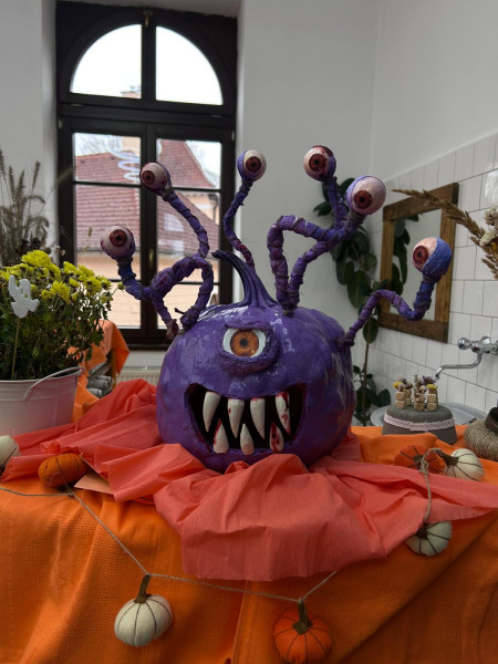 Žiačky 3. C triedy vytvorili fialovú verziu jednookej strašidelnej tekvice. Páči sa ti? Táto tekvička patrila medzi najlepšie v školskom kole:-)