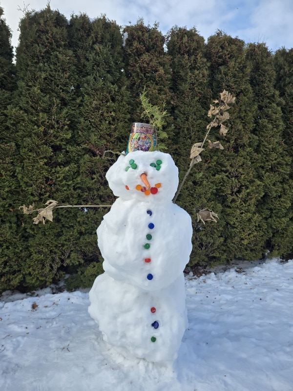 Deti z MŠ Trebostovo samy vyrobili snehuliaka, ktorý krášli dvor materskej školy.