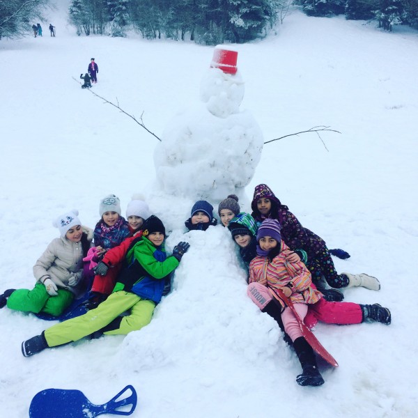 IV.A trieda a Snehuľko Prvá tohtoročná sánkovačka dopadla na výbornú, žiaci svojho spolužiaka premenili na snežného muža