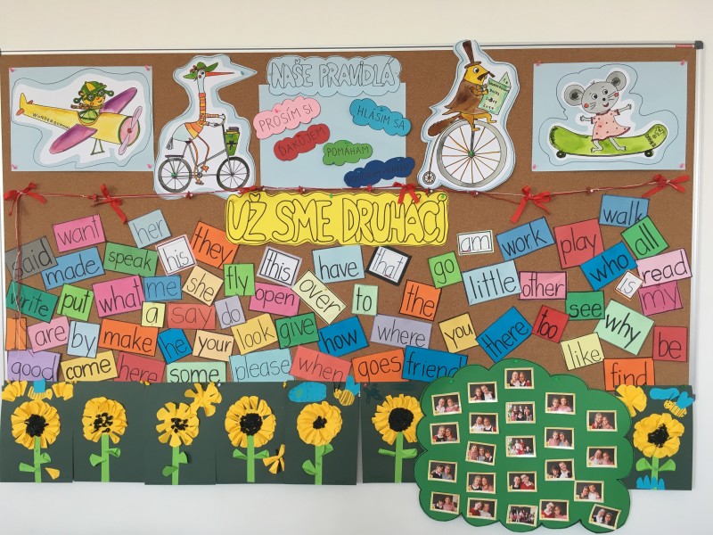 Zasadili sme slnečnice na spodok nástenky, opakujeme pravidlá a anglické slovíčka