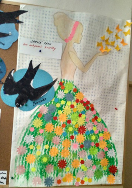 Deti nalepovali kvety a motýle.