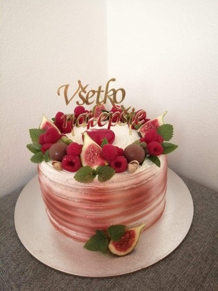 Torta s ovocnou ozdobou na vrchu pre oslávenkyňu