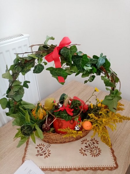 školáci nazbierali plody jesene a vyzdobili si chodbu školy